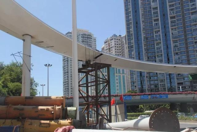横跨东渡路的节点一桥梁顺利贯通