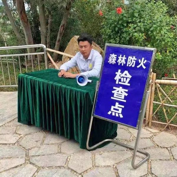 工作人员及巡山员佩戴圆形森林防火标志胸针,加强防火宣传和警示教育。